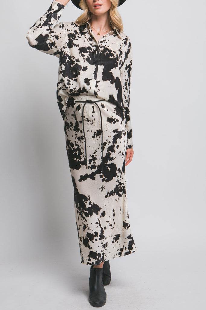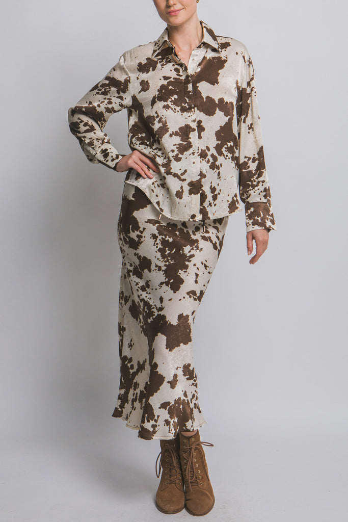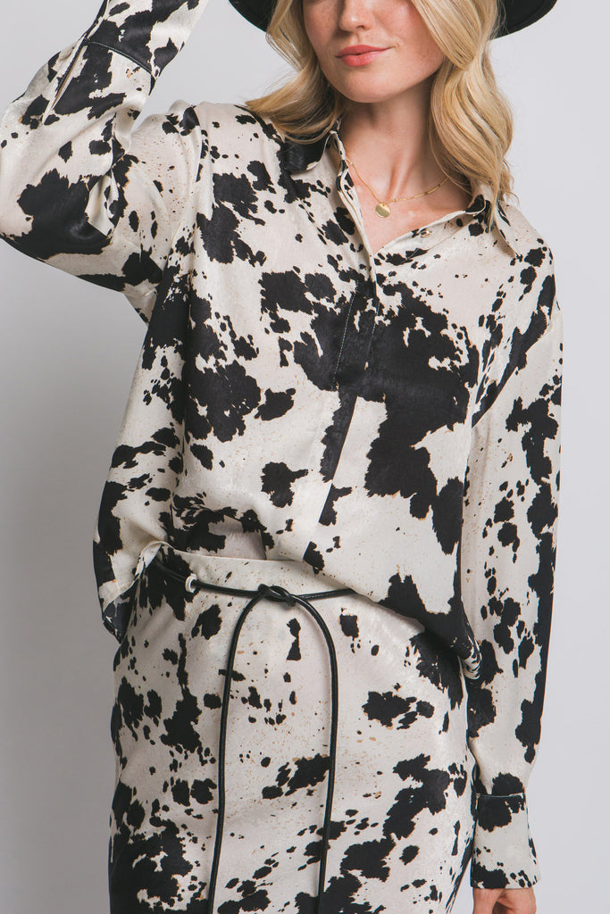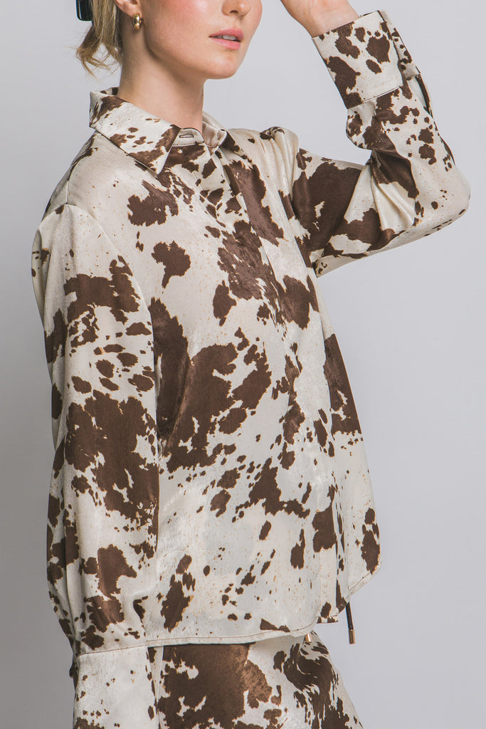 COW PRINT BUTTON DOWN BLOUSE
